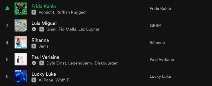 “Frida Kahlo”, “Paul Verlaine”, “Coco Chanel” – wenn man durch die verschiedensten HipHop-Playlists scrollt, fallen…
