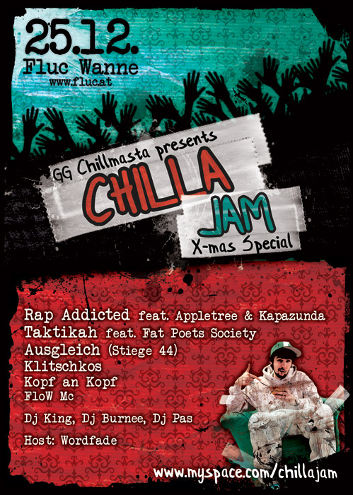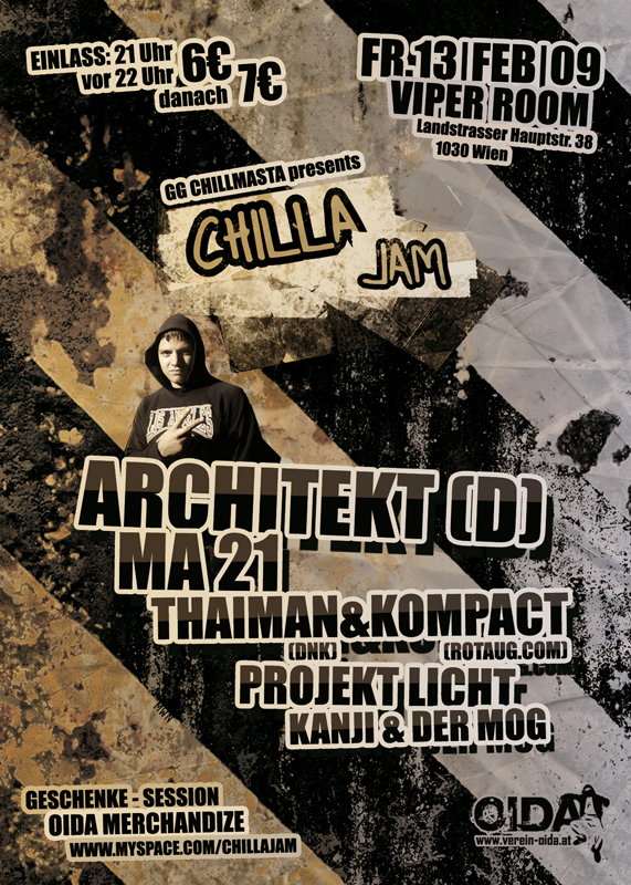 Mastermind GG organisierte bereits 2004 regelmäßig Birthday-Bashes und sammelte 2005/06 erste Erfahrungen als (Mit-) Veranstalter bei den „Na Oida“-Festen (nicht zu verwechseln mit dem Verein „OIDA“). Vorbild und Vorläufer für die „Chilla-Jams“ war dann Mitte der 00er-Jahre die „Burn Da City“-Veranstaltungsreihe. Dort imponierte GG zwar die hohe Qualität bezüglich der Line-Ups, des Equipments und der Versorgung der Künstler. Einige Schwachstellen konnte er allerdings ausmachen, die sich vor allem auf den Kartenverkauf bezogen – mussten sich die Künstler schließlich jeweils selbst um diesen kümmern.