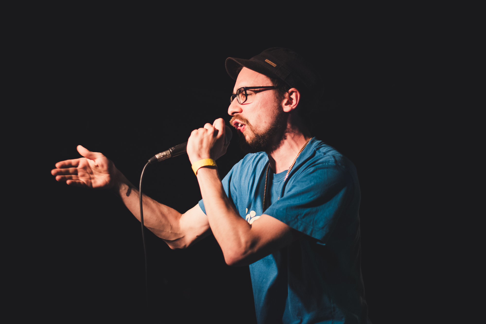 Die Mostheadz verkürzen kleine (Rauch-)Pause eigenmächtig und legen einfach los – sie verzichten also auf eine Ankündigung sowie gefühlt 90 Prozent der Besucher. Zu Beginn ihrer vor der Bühne performten Show kommentiert Woldow süffisant die zweite Abwanderungswelle: „Super, dass da alles so schön zamkommt – außer Raucher und Nichtraucher.“ Auch in einer bei den ersten Tracks erneut fast leeren Hütte liefern sie voll ab, zeigen sich energiegeladen und beweisen MC-Charakter. Neben Auszügen aus „Direkt aus der Brennerei“ und dem Kardinal-Kaos-Soloalbum „Da Goidane Beasch“ widmen sich die technisch versierten, auf 90er-Jahre-Boombap-Sounds spezialisierten Rapper auch Classics wie „Gnackwatschn“ sowie ein paar Freestyles – Woldow auch ungeplant, nachdem er einen älteren Part vergessen hat.