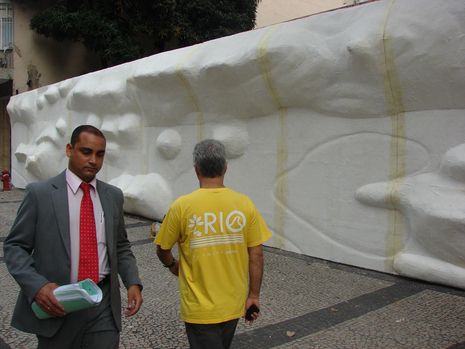 Mehr als 12 Monate arbeitete die Gruppe Rund um das Bruderpaar Senna, Diogo D’lara, Rennan Duarte und den Konzeptkünstler Ronald Duarte an diesem Projekt, das insgesamt mit ca 15.000 Euro von der FUNART, gefördert wurde. Das aus Styropor und Fieberglas gestaltete Modell zeigt den Passanten in einem Schattenspiel nicht nur die Vogelperspektive mit dem geographischen Höhenlinien, sondern zu Mittag in einem Schattenspiel auch das Relief der cidade maravilhosa, wie Rio von seinen Einwohnern stolz genannt wird.