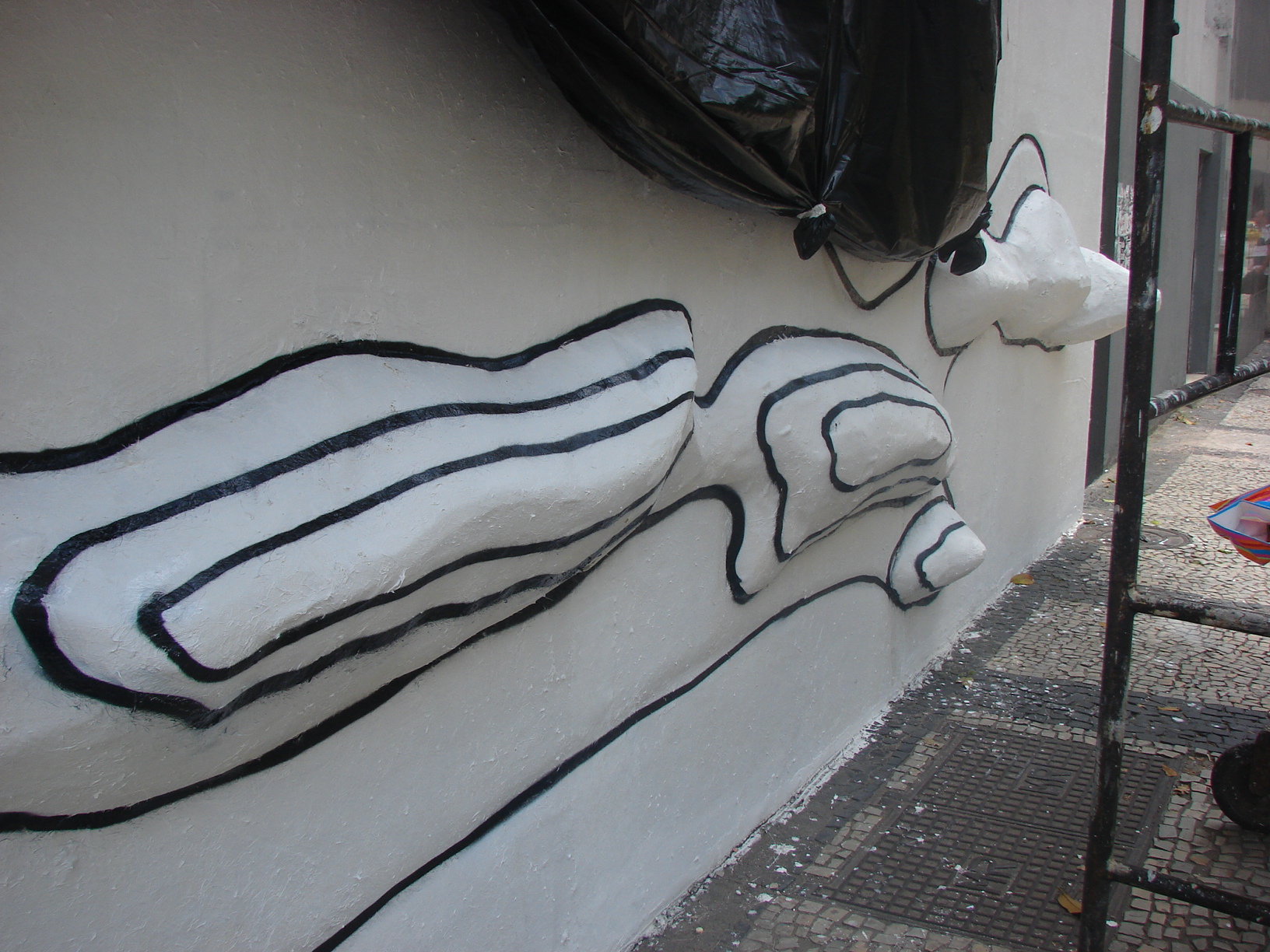 Das aus 25 Einzelteilen bestehende, insgesamt 25 Meter lange Teil wurde in der Nachbarstadt Niteroi hergestellt, per LKW transportiert und in Handarbeit angebracht. Einige Monate und Probleme später (wie etwa mit der Wand, die im Zuge schwerer Regenfälle überzuhängen begann), wurde das Kunstwerk mit einer Party, Live Musik und unter Anwesenheit des Generalkonsuls Mitte Dezember eingeweiht.