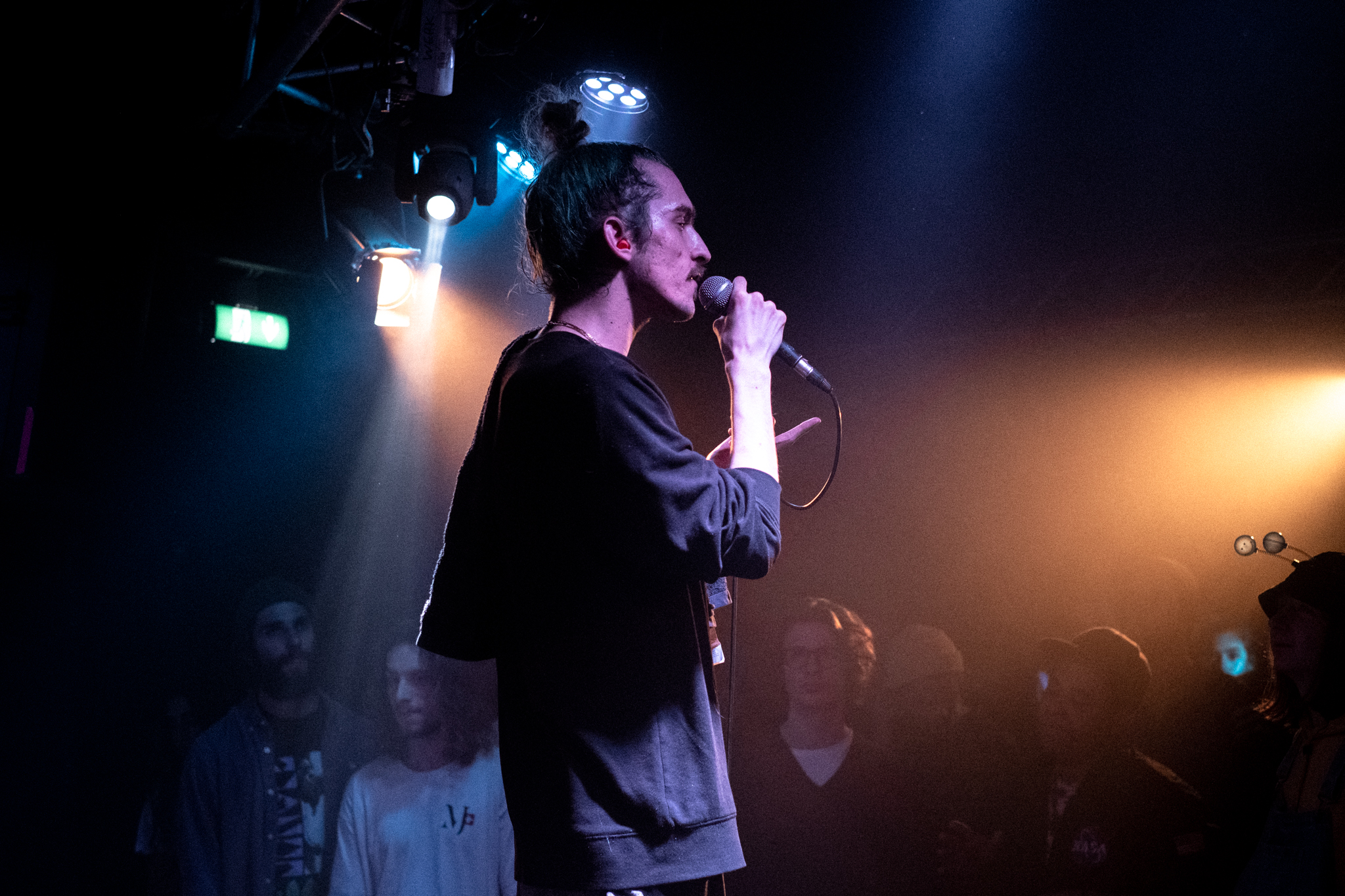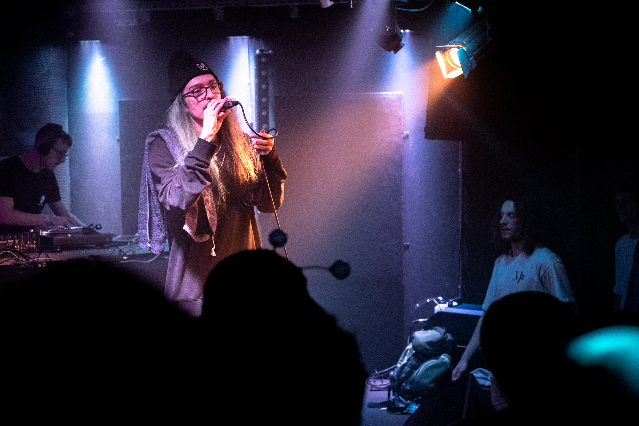 Am Donnerstagabend füllt sich das Wiener Werk nur langsam. Das parallel stattfindende Princess Nokia-Konzert in der Arena als Publikumsmagnet mag wohl ein Grund dafür sein. Als gegen 20:30 Uhr jedoch Voract HipHop Joshy (statt dem in Deutschland mittourenden Odd John) zusammen mit seinem DJ und Diskoromantik-Partner Melonoid beginnt, füllt sich der Raum erstaunlich schnell, sodass bald eine gemütliche Konzertstimmung entsteht. Joshy, den man nicht zuletzt durch das Label Heiße Luft mittlerweile in der Wiener Szene kennen sollte, spielt ein solides Vorprogramm vor heimischem Publikum vor allem aus seinem Solo-Mixtape „Wenn ich ein Auto wär, wär ich ein kaputtes Auto“ und schlägt neben eher partytauglicheren Tracks wie dem mittlerweile obligatorischen „Gib Joint“ auch sentimentalere Töne an, was gut zum Motto des Abends „Kummer & Qualm“ passt. Der Hang zu Melancholie und Rauchbarem scheint die beiden Protagonisten des Abends zu vereinen.