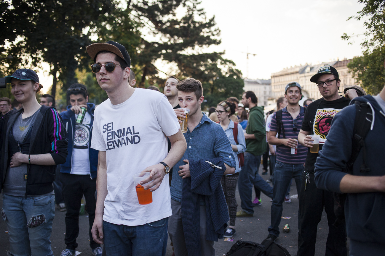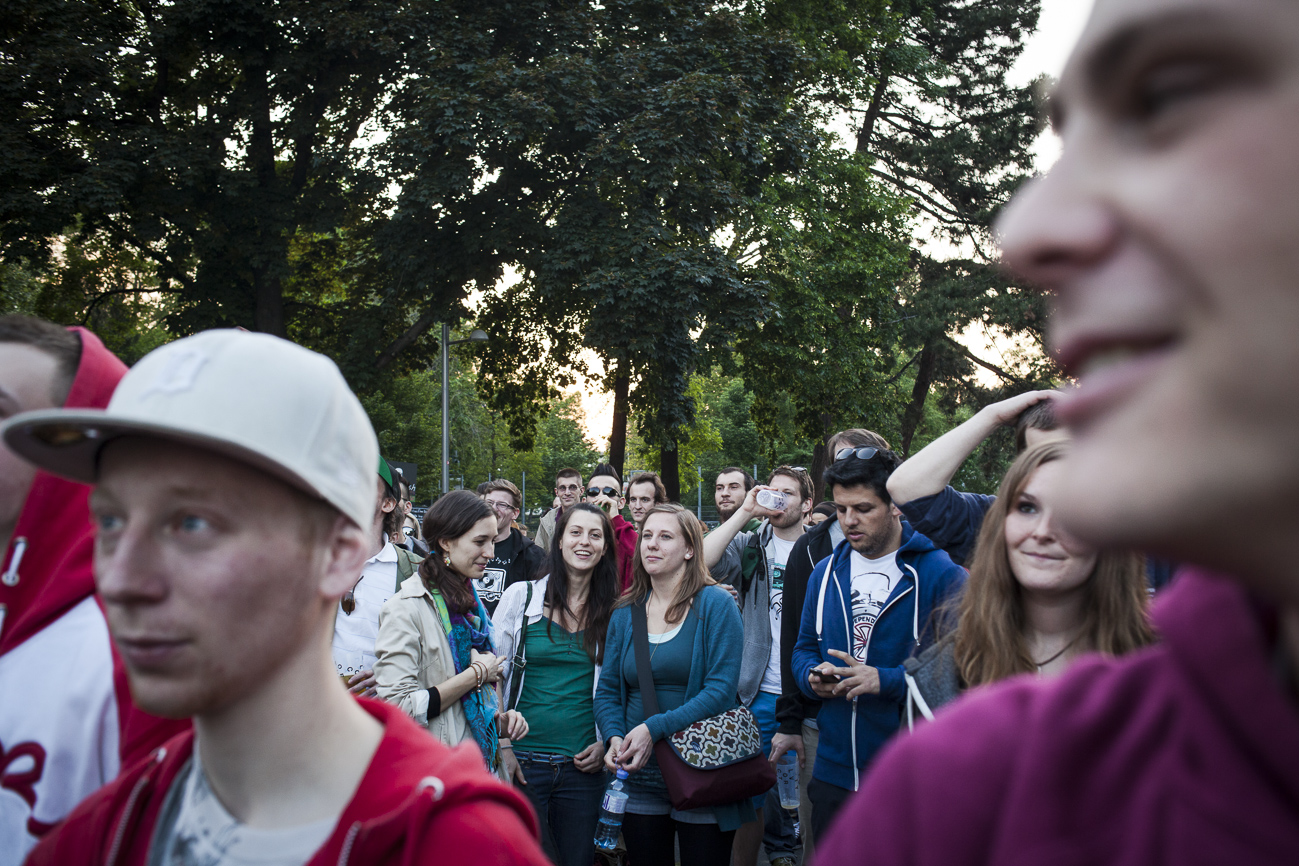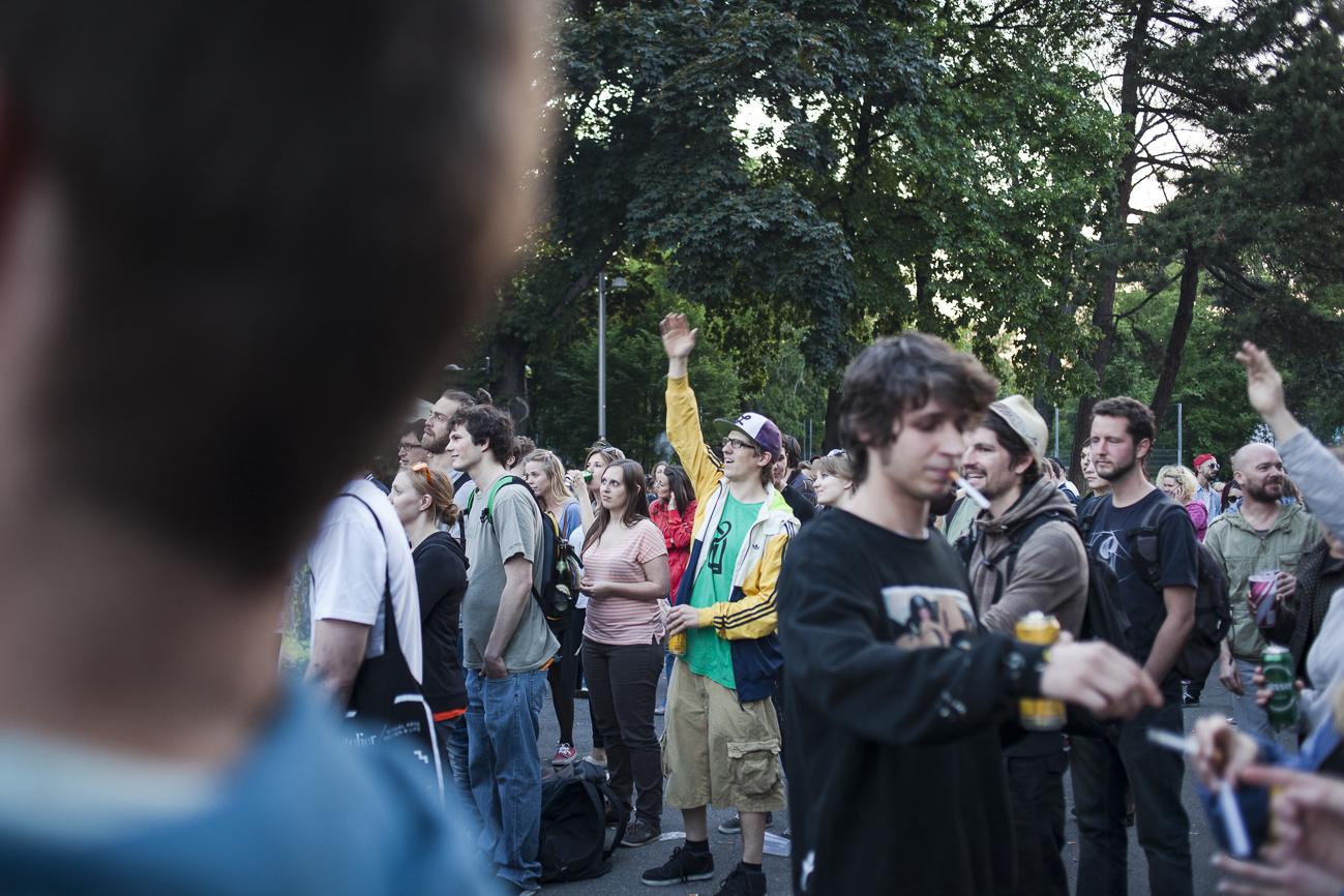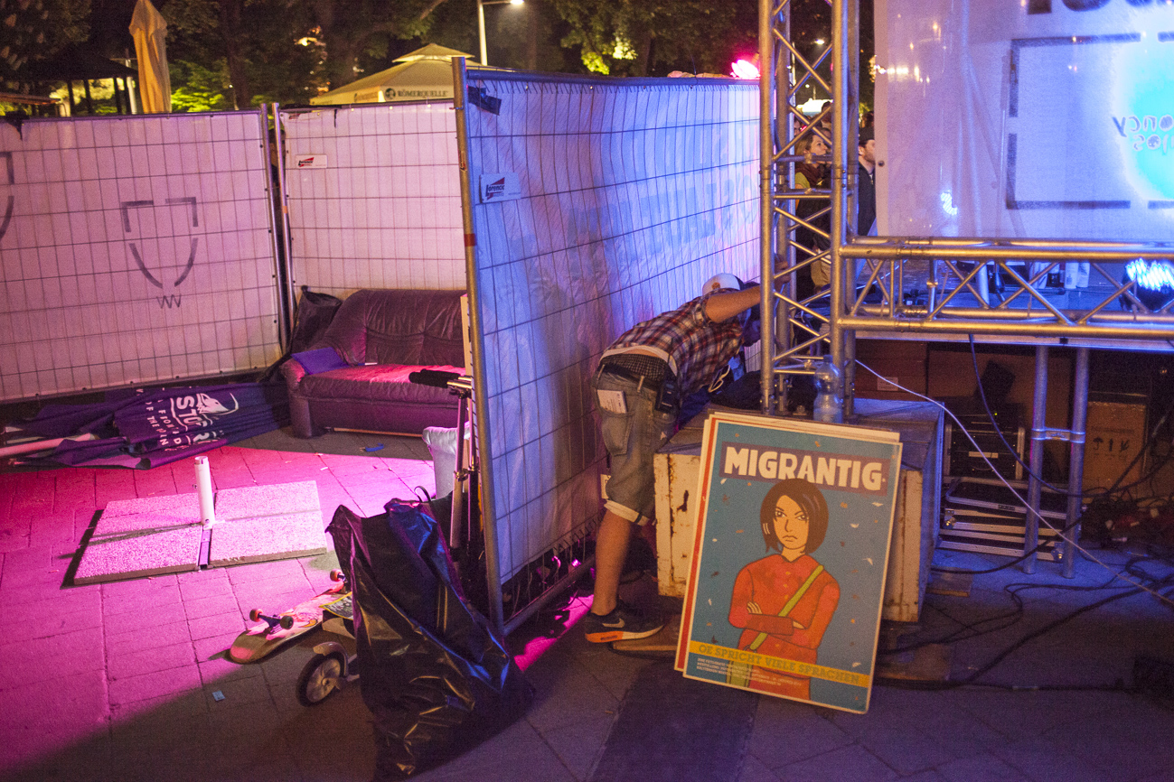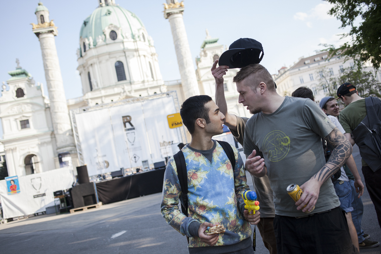 Endlich… Endlich konnten auch die HipHop Heads ihrer Lieblingsmucke bei herrlichem Wetter und traumhafter Kulisse (mit direktem Blick auf die Karlskirche) frönen. Und das alles auch noch für den guten Zweck! So begibt man sich an einem wunderschönen Nachmittag Richtung Karlskirche, mit guter Laune und genug Proviant für den Tag im Rucksack (denn wer Open-Air sagt, muss auch „leiwand-ich-kann-mein-eigenes-bier-und-mein-wurstsemmerl-mitnehmen“ sagen). Programmtechnisch gab es um 14 Uhr (für Überpünktliche) noch nichts zu holen. Aber die Zeit totzuschlagen, fiel mit den Füßen im Brunnen und der Musik aus dem Red Bull Container nicht allzu schwer. Circa um 15 Uhr 30 wurde der erste Input zum Kampf gegen Diskrimierung und Intoleranz gegeben. Es wurden die ersten Interviews mit den RepräsentantInnen der Ute Bock Organisation und SOS Mitmensch geführt. Die Anwesenheitszahl hielt sich zu diesem Zeitpunkt (leider) noch in Grenzen, aber zumindest wurden die verdutzten Passanten und Parkbesucher („Was gibt’s hier?“) über Sinn und Zweck der Veranstaltung aufgeklärt. Im Interview mit TheMessage, erklärte Burstup von Schönheitsfehler, warum Rap – als Genre mit dem wohl größten Wortanteil – wie geschaffen für so eine Veranstaltung sei. Die Interviewrunde mit den restlichen Artists des Konzerts, fiel aufgrund von Zeitdruck leider aus (eine Stellungnahme von ein paar der MCs findet ihr aber in unserem Videobericht). Nachdem klargestellt wurde: „HipHop ist offener geworden und wird nicht weggehen!“, begannen gegen 17 uhr 30 die Live Performances. Den Anfang machte Kash Kane, der nicht nur aufgrund seiner tollpatschigen Eröffnung („It’s All About Hitler…Fuck Hitler“), sondern auch wegen der übersteuernden Anlage, wohl nicht so viel Anklang beim Publikum fand. Es beschlich einen das Gefühl, dass die Anlage heute wohl nicht mehr für Live-Action hergeben würde. Nachdem die VertreterInnen von Organisationen wie Zara, Amnesty International, Biber Magazin etc. noch einmal Sinn und Zweck der Veranstaltung erläuterten, füllte sich der Platz und die Stimmung wurde immer besser… Das bemerkte man schon zu Beginn des nächsten Acts: nämlich Kopf an Kopf ab. Die Jungs rappten zwar nicht zum ersten Mal im Resselpark, „aber zum ersten Mal auf einer Bühne“. Hochpolitisch war das Ganze nicht, dafür doppelt so unterhaltsam. Nach einer chaotischen halben Stunde und ein paar Leckerbissen aus dem Album des Bösen Wolfs aka Nima, räumten die sechs Wiener die Bühne und machten Platz für den Salzburger Local, Demolux. Der hatte T-Ser und Thaiman mit im Gepäck. Die drei lieferten eine sehr coole Show und bewiesen, dass sie eindeutig zu den talentiertesten Rappern im Lande zählen. Auch der ein oder andere Textfehler wurde mit gekonntem Freestyle (fast) kaschiert. Vorallem T-Sers „Austrophobie“ passte super ins Konzept. Doch letztendlich fragte sich der Großteil des Publikums: „Wo war „Müllmänner“? Die nächsten Acts, nämlich Migzebonez und die Duzz Down San Allstars heizten dem mittlerweile gesteckt vollem Karlsplatz ordentlich ein. Die RA Hymne, „Grüß Gott“ von P-tah wurde präsentiert und damit der Fokus wieder daraufgelegt, warum sich überhaupt so viele Mensch im Zentrum Wiens zusammenfanden. Nach einem kurzen Auftritt des Prostesongcontest Gewinners „Fight Rap Camp“ betrat der letzte Act des Abends die Bühne: Yasmo. Mit viel Humor und guter Laune brachte sie die Botschaft des Abends perfekt rüber. Thematisch ein ideales Booking für so ein Event. Auch die Crowd hatte sichtlich Spaß und selbst Yasmo, die ihre Mutter zum Konzert mitgebracht hatte, schien stellenweise überrascht vom Engagement des Publikums. Gekonnt schlüpfte sie für ein paar Tracks in die Rolle der Miss Lead und beendete ihr Set schlussendlich mit dem Titeltrack ihres letzten Albums: Kein Platz für Zweifel. In der Tat blieb nach den abschließenden Tracks von DJ Bacchus kein Platz mehr für Zweifel, dass die Veranstaltung ein voller Erfolg war. Ein guter Tag gegen Rechts, Intoleranz, Diskriminierung und für HipHop in Österreich!