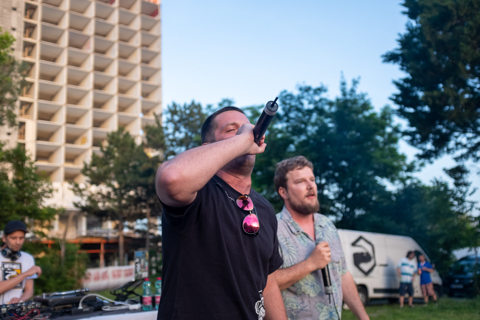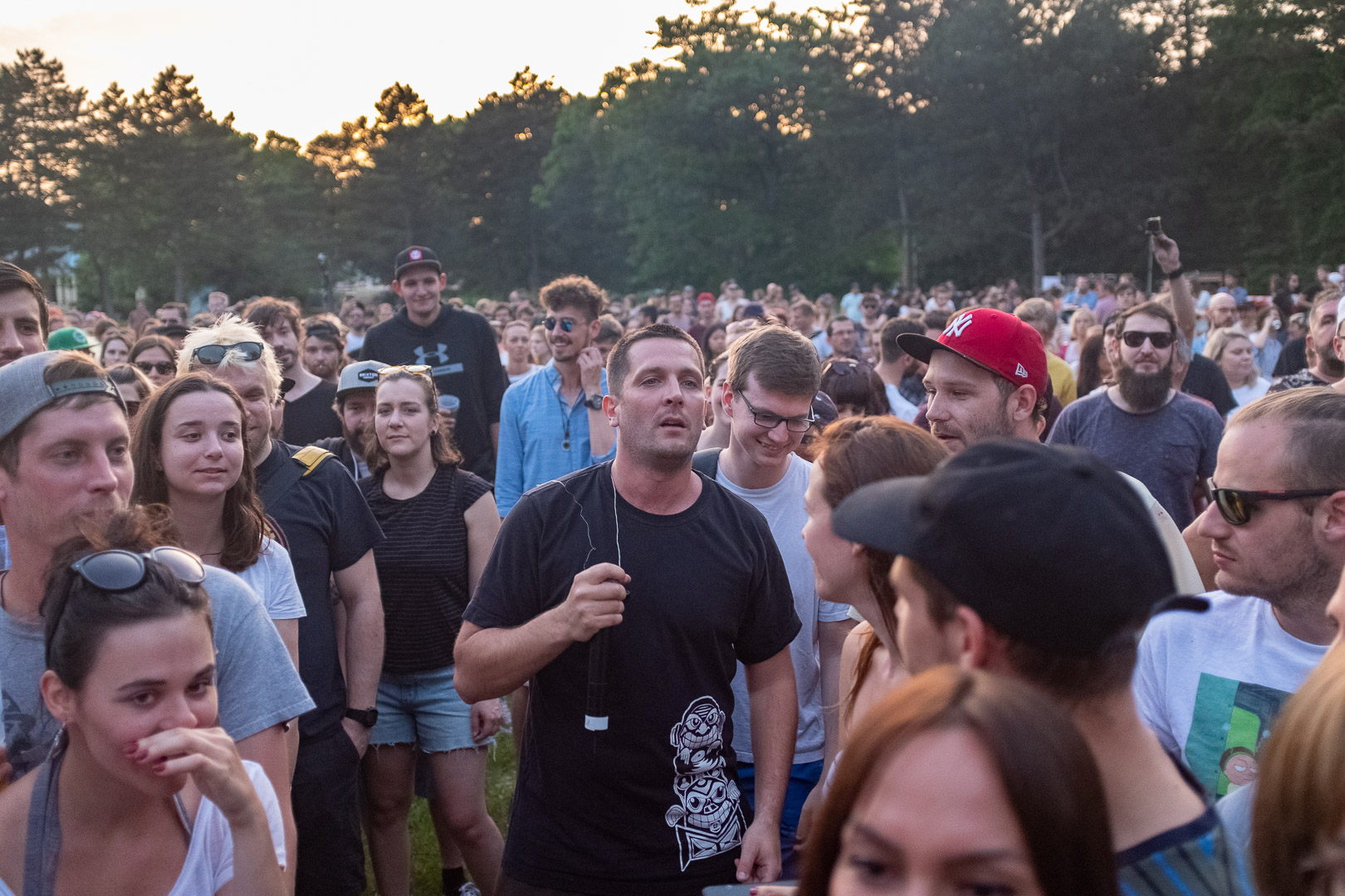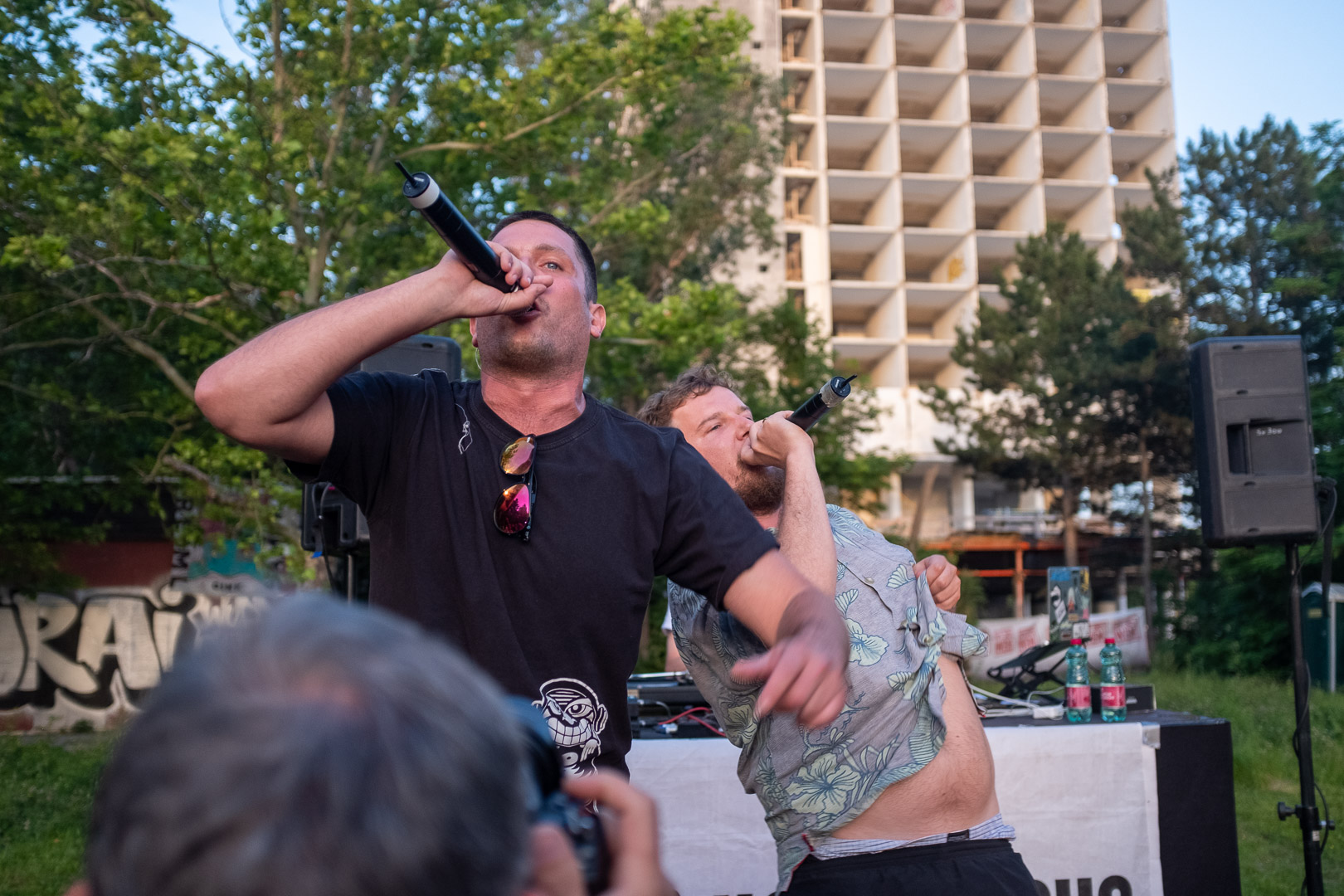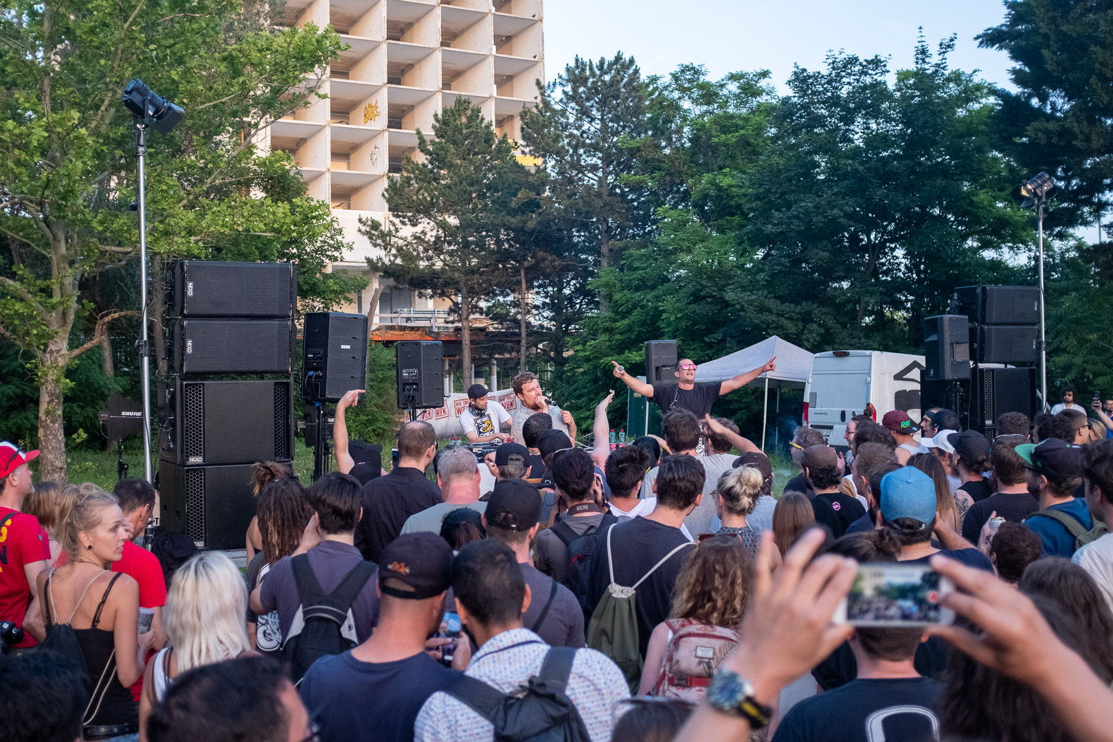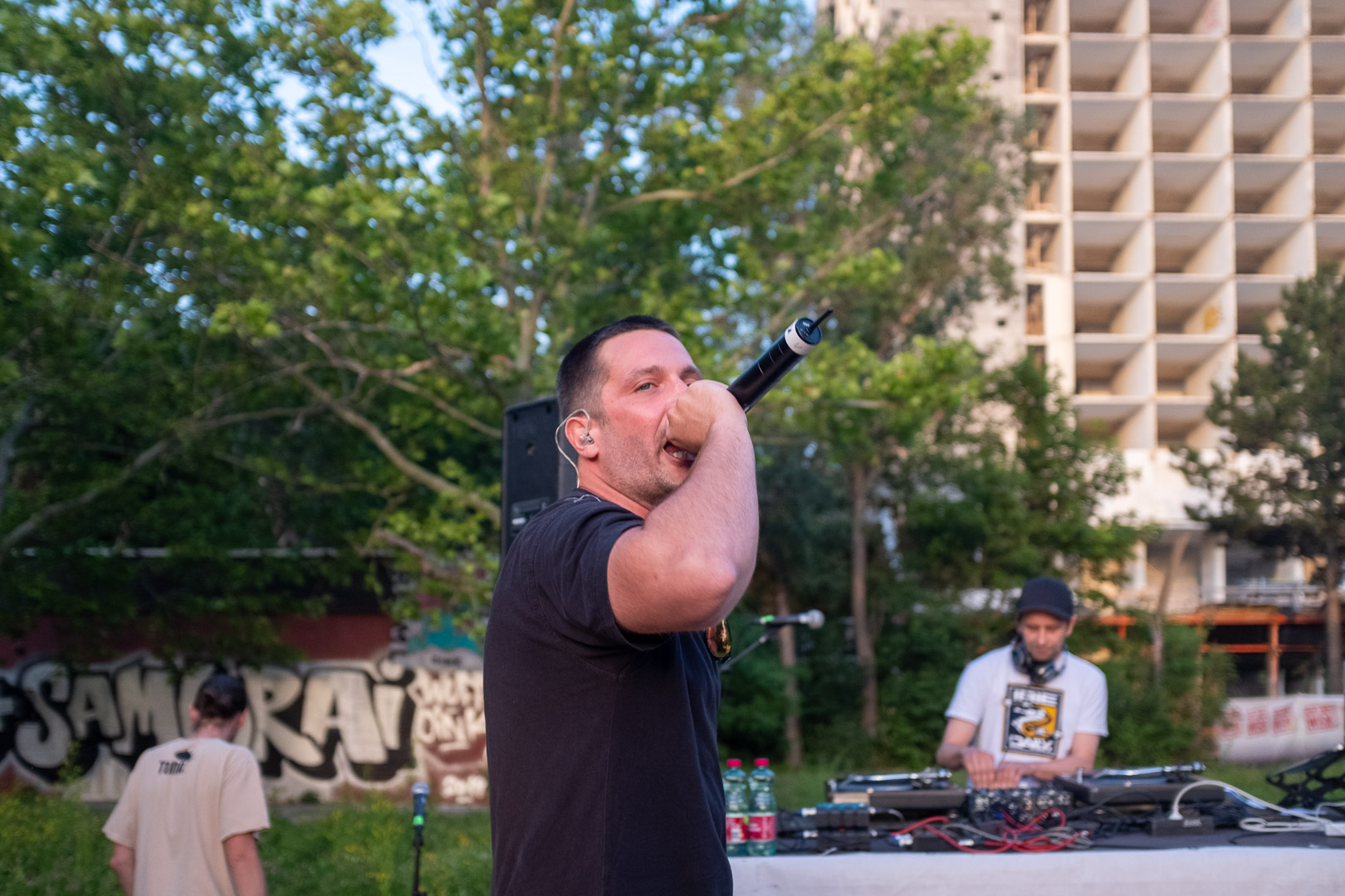 Stell dir vor, eine Wiener Gstättn, dazu jede Menge motivierte Menschen, die wegen der schönsten Männer Wiens gekommen sind. Oder dem Schweinehund, auch bekannt als Kreiml & Samurai. So ganz genau weiß man das oft nicht. Auf jeden Fall nach Favoriten. Bei brütender Hitze. Aber bei freiem Eintritt. Win-win, wie der Wiener so schön sagt.