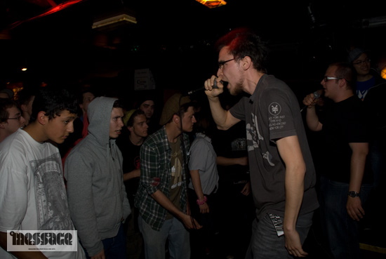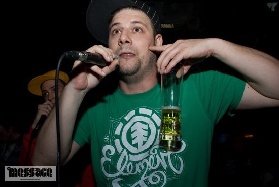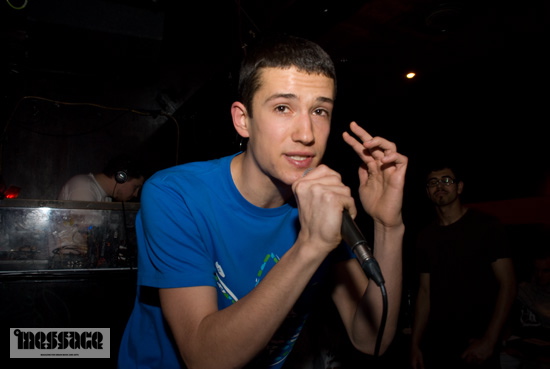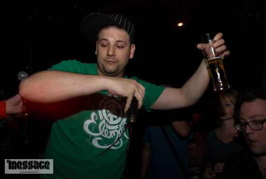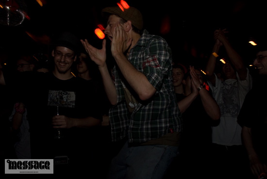 Aber der Reihe nach…sieben Teilnehmer waren beim „Message am strom Contest“ um den letzten freien Slot beim diesjährigen Festival in die Endausscheidung ins Wiener Roxy eingeladen. Sie hatten die Aufgabe mit einem fünfzehn minütigen Live Auftritt die Jury und das Publikum davon zu überzeugen, dass sie die Richtigen für den Opener Slot wären. Die Namen in der Reihenfolge der Auftritte: Schwaboss, Illusion, Null8Sprachrohr, ChiLL-iLL, Doppelt Sichtbar. Clavigo, Kopf an Kopf ab. Das Roxy war voll und die Stimmung gut. Für viele waren wohl die extra aus Bayern angereisten „Null8Sprachrohr“ die größte Überraschung. Selbst kategorisieren sie sich als „Electro, Rap, Trash, Hip Hop“ und eine Mischung mit Betonung auf Rap bekam man dann auch beim erstaunlich klarsten Sound unter den Teilnehmern zu hören. Die Sieger „Kopf an Kopf ab“ waren für die meisten noch um eine Spur besser, aber wohl auch schon vielen aus dem Publikum bereits von Wiener Bühnen mit Freestylebattles bekannt und somit nicht ganz so überraschend.