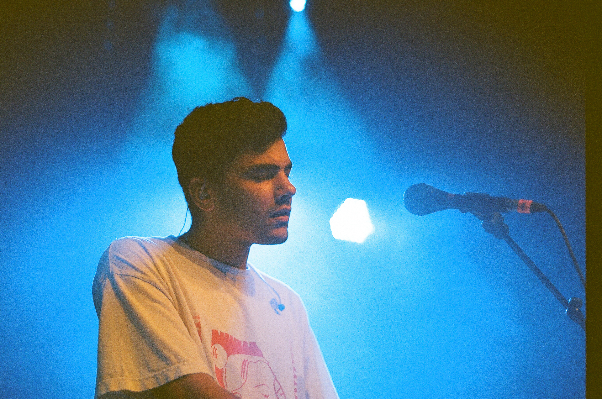 Das Licht im „WUK“ wechselt von blau über lila zu pink und taucht Jamie, dessen Gesichtsausdruck erahnen lässt, wie sehr er in der Musik vertieft ist, in neblige Atmosphäre. Das Foyer mit seiner gemütlichen Atmosphäre war die perfekte Wahl für seinen Auftritt. Mit schläfrigem Tonfall bedankt sich Jamie ein paar Mal beim buntgemischten Publikum und scheint sich sehr bewusst zu sein, dass das Publikum mindestens genau so viel Spaß hatte wie er.