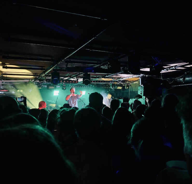 Der Andrang bei den Eingängen und der Garderobe ist groß. Wir schaffen es gerade noch rechtzeitig zum Voract. Üblicherweise vergeben Künstler ihre Support-Slots bei Live-Shows eher an unerfahrene bzw. weniger etablierte Musiker. Somit geben sie ihnen die Chance, ihre Kunst einem breiteren Publikum zu zeigen und Live-Erfahrung zu sammeln. Nicht jedoch bei RIN. Ex-„Alles oder Nix“-Member Kalim, der seit Jahren in der deutschsprachigen Rapszene etabliert ist und sich eine relevante Größe erarbeitet hat, darf RIN auf der gesamten Tour begleiten. Früher noch BoomBap und Westcoast-Vibes auf Neckbreaker-Beats, heute Trap. Der Hamburger hat eine beachtliche Entwicklung gemacht und passt mittlerweile musikalisch gesehen gut zu RIN. Kalim spielt ausschließlich Songs von seinen letzten zwei Alben und heizt gut ein. Nach 20 Minuten ist das Aufwärmprogramm vorbei und er verschwindet im Dunkeln.